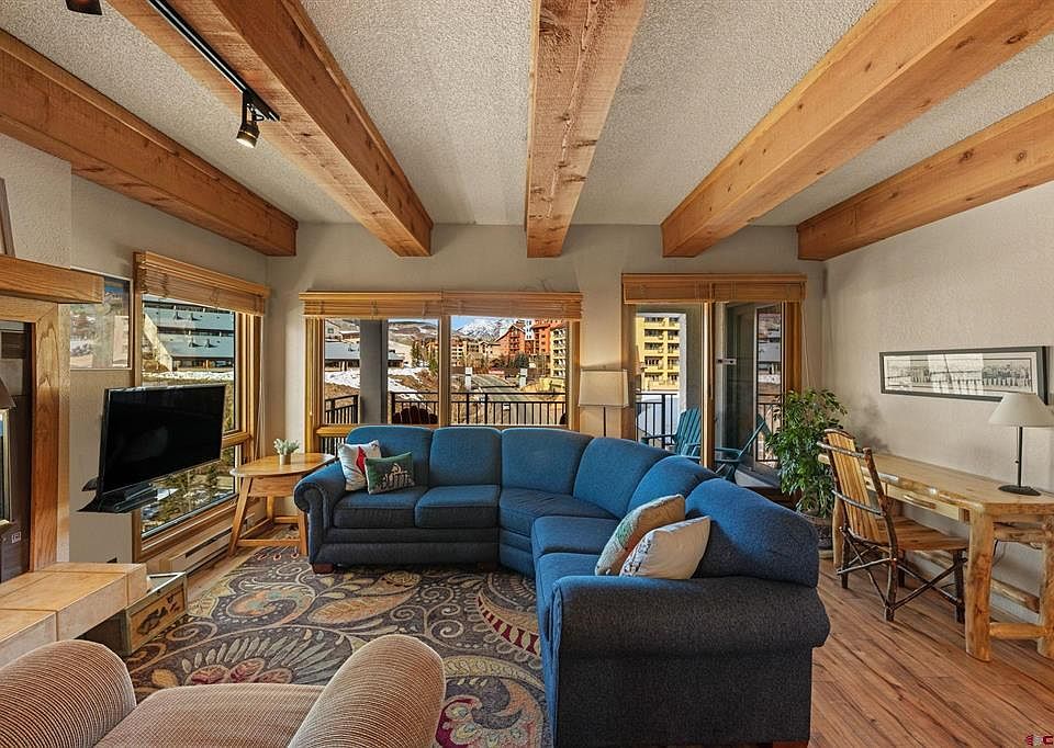One of just four penthouse residences at The Plaza, Unit #638 offers a quiet top-floor location, privacy, and classic mountain charm in the heart of Mt. Crested Butte! The Plaza is just a short walk to the main ski lifts and is one of Mt. CB’s most amenity-rich complexes. Owners and guests enjoy covered parking, two hot tubs, a steam room, ski lockers, tennis and pickleball courts, game area, and the convenience of a popular on-site restaurant for lively après socializing. The HOA is also actively working toward adding a new fitness facility, further enhancing the lifestyle and long-term value. New owners will benefit from some massive renovations in recent years, including a fully redone stucco exterior, a new roof, a beautifully remodeled lobby and common spaces, and upgraded internet. To reach Unit #638, take the elevator to the top floor. This condo features 2 bedrooms, 2 bathrooms, a spacious entryway, in-unit laundry, authentic woodburning fireplace (with firewood provided by the HOA!), and open concept living. The exposed wood beams add warm rustic character, and the private balcony offers a place to take in the fresh mountain air with up-valley with views of the West Elk Mountain range. The primary suite includes an ensuite bath, while the second bedroom with custom log bunk beds offers flexible accommodations for family or guests. This unit is a popular rental with limited showing availability for the rest of winter! Offered fully furnished and turnkey, it’s ready for immediate enjoyment or rental income. For buyers seeking walkable lift access, lots of amenities, and true lock-and-leave convenience, Plaza #638 delivers rare penthouse ownership in a premier location!