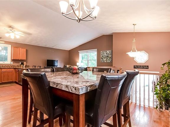 Impeccably Maintained Raised Ranch with Gleaming Hardwoods and an Open Living Floor Plan! Modern Kitchen boasts a Breakfast Bar open to large Dining Area and Living Room. 3 Bedrooms and 1 Full Bath upstairs plus a finished Walkout Basement with Family Room, an additional Full Bath and separate Laundry Room. Pellet stove in basement for supplemental heat source.