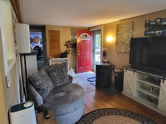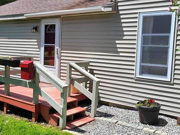 Move in condition!! Adorable 2 bedroom modified ranch on a corner lot. The home has an open kitchen/living room, 2 good sized bedrooms, bath, wood floors, new windows, vinyl siding, generator hook up, camper hook up, pellet stove, wood floors, large fenced in back lawn, hot tub, fire pit, garden area, 2 storage sheds, deck, beautiful trees and flowers, 0.24 acres.