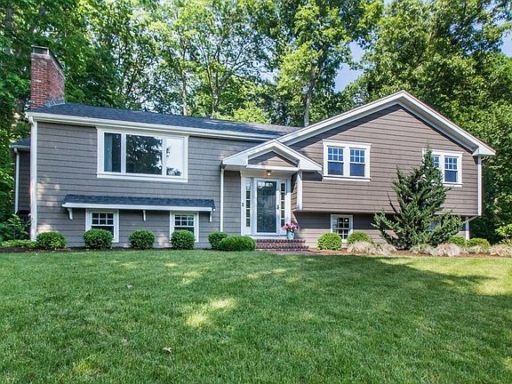 Welcome to 11 Stagecoach Road, where you'll discover a sun-drenched residence on 0.7 acre lot located in a much sought-after neighborhood. Positioned on a serene, sidewalk-lined street, the location offers easy access to Walpole’s commuter rail. This home showcases enticing details such as: hardwood floors, newer bathrooms, and a renovated kitchen. The expansive kitchen features custom cabinets, stainless steel appliances, granite countertops, a breakfast bar, and a vaulted dining area with sliding door access to the ample deck. Sip your coffee and relish the tranquility of the private backyard. Enjoy the inviting fireplaced living room as well as the entertainment-sized dining room with its desirable decorative moldings. Three bedrooms and two bathrooms complete the main level. The lower level has a cozy fireplaced family room, laundry room, and an additional half bath. In this home’s prime location, you'll enjoy the convenience of Medfield's and Walpole's vibrant & thriving downtowns