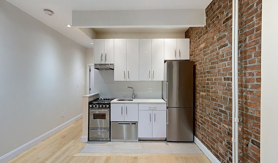 Step into this brand-new renovation featuring hardwood floors, charming exposed brick, and modern finishes throughout. Both bedrooms include closets for added convenience. Enjoy a sleek kitchen with a dishwasher and a stylish full bath. Located in the vibrant Lower East Side close to trendy cafes, dining, and easy transportation this apartment combines comfort, character, and city living at its best.