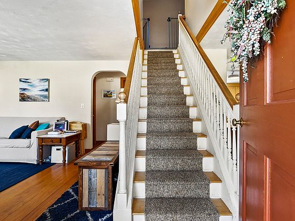 Welcome home! This charming Cape in Stoneham has so much to offer! The living room boasts a large picture window, bringing in tons of natural sunlight and a cozy fireplace. Kitchen is complete w/ a breakfast bar, pantry, and exterior access to the back deck - perfect for outdoor dining! Adjacent to the kitchen is the formal dining room. Completing this level is a bedroom and full bathroom w/ a tub/shower. Upstairs, discover two additional bedrooms, including a spacious primary with beamed ceilings, a skylight, and private bathroom w/ a jacuzzi tub - a true retreat! The partially finished basement offer additional living space w/ a family room. Laundry hookups and convenient access to the 1-car garage also on this level. Escape to the backyard which is fenced for added privacy and has a stone patio and back deck - perfect for the summer months ahead! Amazing location with easy access to I93 and I95. Don't miss out on the chance to make this your new home! See it today!