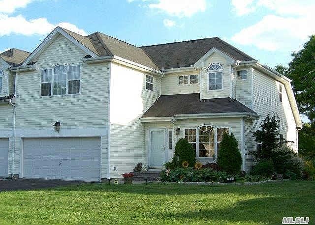 Delight in this corner unit in a beautiful gated community. Open floor plan, vaulted ceilings, and spectacular custom kitchen with quartz countertops, chef-quality gas range and oven, wine fridge, style, and class. Gas fireplace in the family room. Upstairs is comprised of two generous bedrooms, a full bathroom with double sinks, and a massive master suite with two walk-in closets, a jetted tub, and a shower in the private bathroom. Full finished basement, two-car garage, and attic offer lots of storage convenience. A new Trex deck and paver patio complete your outdoor living space. Enjoy amenities like a basketball court, pool, fitness center, community room, snow removal, lawn maintenance, and more. Three Village School district. Home Owner Association Fees are $370.00 per month.
