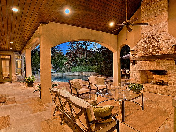Stunning Eaglebrook custom home on a cul-de-sac in Sterling Ridge! Honed Travertine & hardwood flrs, wrought iron staircase, wood beam ceilings & amazing millwork. Gourmet island kitch w/granite counters & Wolf 48'' range w/limestone hood opens to bkfast; den w/gaslog FP; study w/elaborate woodwork & coffered ceiling; all bedrooms are ensuite; resort style yard has summer kitchen w/vaulted wood ceiling & stone FP;flagstone deck surrounds pool/spa; European style gardens provide complete privacy!
