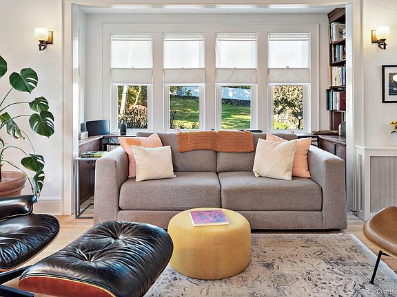 A separate bonus room off the back patio, with its own entrance, provides endless possibilities for a home office, studio, or guest suite. Outside, professionally landscaped wildflower gardens bloom across three seasons, framing custom bluestone patios, a lighted pergola, and lush green space—your own private oasis in the heart of Ossining.
