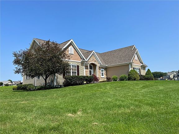 This 2004 SqFt Ranch home offers a spacious and functional layout with 3 bedrooms and 2.5 baths. The open floor plan creates a seamless flow between the living room, kitchen and dining area... perfect for entertaining. The large dining room provides ample space for hosting gatherings and enjoying family meals. The home also features a sizable unfinished basement with 2 egress windows offering potential for additional legal living space. Enjoy the .49 acre lot on your patio or deck with plenty of room for outdoor activities. Home is 2004 SqFt with a 222 SqFt addition with Fairport Electric Hoa 300.00 per year
