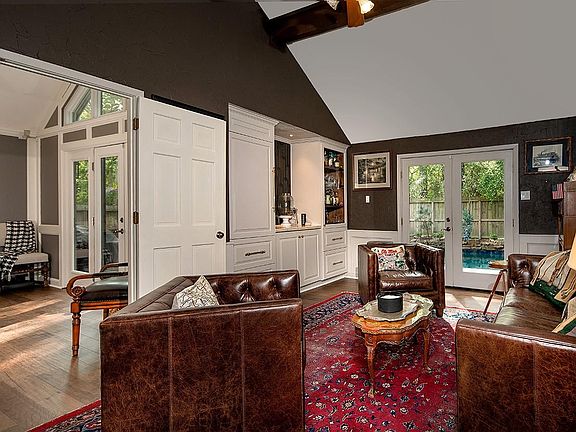 Stunning remodel centrally located in Panther Creek, close to Northshore Park, restaurants, shops, and Whole Foods in Hughes Landing, with easy access to all points of The Woodlands! New engineered wood flooring, neutral paint palette, remodeled baths, gorgeous trim work, built-ins and amazing natural light throughout the home. Island kitchen with granite counters, breakfast bar, double oven, and gorgeous back splash opens to the sunny breakfast alcove; den with gas log fireplace and beautiful views of the backyard and pool; study off the master with wet bar; three bedrooms and game room up with built-in study nook; 2 car attached garage; fenced yard with sparkling pool and spa has room to play and entertain!
