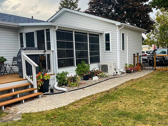 Situated in the high-standards Kenron Estates community, this affordable home has been upgraded in so many ways! Enter into a warm & welcoming open concept layout with generous dining & living space with cozy gas fireplace, family-sized kitchen featuring large island with plenty of storage, warm wood cabinetry & newer appliances (included). Down the hall you will find a 4-piece fully renovated bathroom with oversized linen closet, large laundry room with stackable washer & dryer, laundry sink & plenty of storage space, a large primary bedroom with double closets and windows on two sides for extra light. There is also a second bedroom & a lovely screened 3-season sunroom with a walk out to the rear deck - perfect for family gatherings! Outdoors you will find mature trees & gardens on the lot & private space for entertaining, 2 sheds & a fully fenced yard. Upgraded spray foam insulation, vinyl liner (under home) & mini-split heat pump/air conditioning make this home energy efficient!