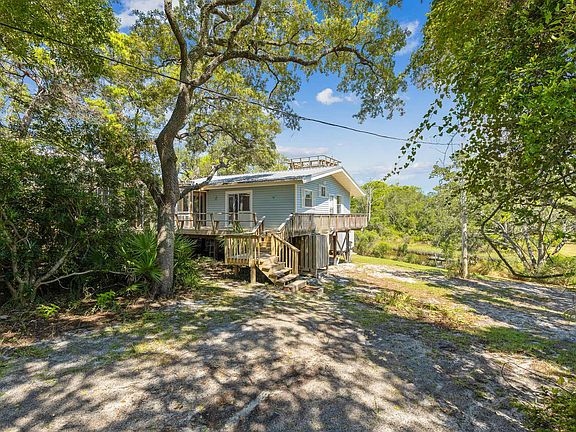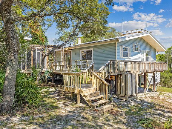 Back on Market because Buyer changed his mind prior to any inspections. DON't MISS OUT on your opportunity own a little slice of Florida's Forgotten Coast. This home offers bay/canal and gulf VIEWS, with a dock on the canal with an abundance of outdoor entertaining space. This UPDATED Coastal Cottage has been offers a BRAND NEW HVAC with BRAND NEW duct work, gas water heater, vinyl plank flooring throughout, interior paint, fully renovated bathrooms and kitchen. The home has a low-maintenance metal roof, vinyl siding and a wood burning fireplace for additional ambiance during the winter months. The house is situated on an oversized lot, nestled behind beautiful trees offering privacy, yet offering both gulf and canal views from inside the home. Additionally, there are 3 levels of decking out back, with built in seating perfect for entertaining friends, hosting cookouts or having afternoon cocktails after a day on the beach/water and an outdoor shower. The front of the home also features a large deck, including a fully screened in porch. Along with the home, there is a MASSIVE storage shed, a tree swing and small outdoor fire pit. Alligator Point is part of Florida's "Forgotten Coast", which offers a laid back lifestyle, lots of natural nature, bird watching and more. This home would make an excellent second home and has the potential to be INCOME PRODUCING via Airbnb, VRBO, etc. **All measurements are approximate - Buyer to verify if important. Selling As-Is with right to inspect.**