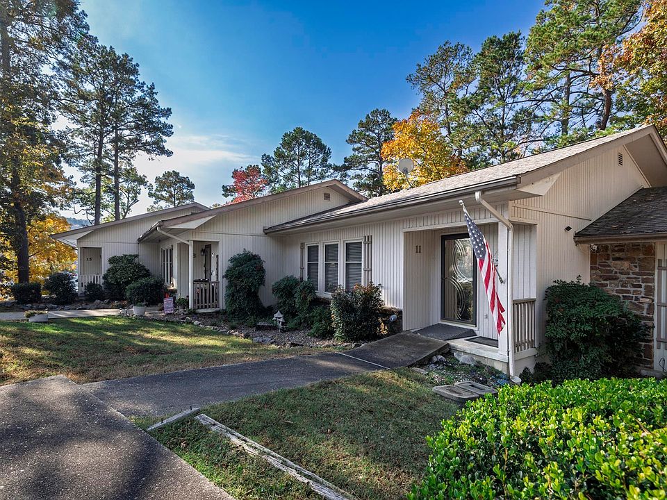 LAKE LIVING. This 4 bedroom lakefront townhome in popular Madrid Courts is a gem. Newer carpet, and LVP, roof 5 years old, walk in shower 1 year old, freshly painted and ready for new owner. This home includes 4 very good size bedrooms, Arkansas room off dining, covered deck on entry level and covered patio on lower level. Ceiling fans, lazy Susans, spacious closets and so much more. Laundry has room for storage/workshop. INCLUDES DOCK, PONTOON, LIFT, 2 KIDS KAYAKS AND 2 ADULT KAYAKS. Don't miss out on this exceptional buy in beautiful Hot Springs Village. Property will be sold furnished. There are a few sentimental family items that will go but most everything stays with the home. Hot Springs Village boasts 9 golf courses, 11 lakes, pickleball, hiking trails, white sand beach, tennis, fitness center, indoor and outdoor pools and so much more. Half an hour from Hot Springs or Benton and one hour from Little Rock airport. HSV has one time $2000 buy in for new residents.