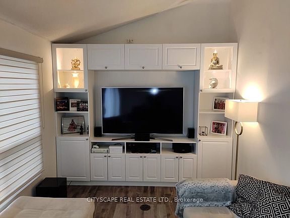 Family roomNew ss appliancesExterior portlightsWindow blindsKitchen with extended cabinetryEntertainment cabinetryGarage door