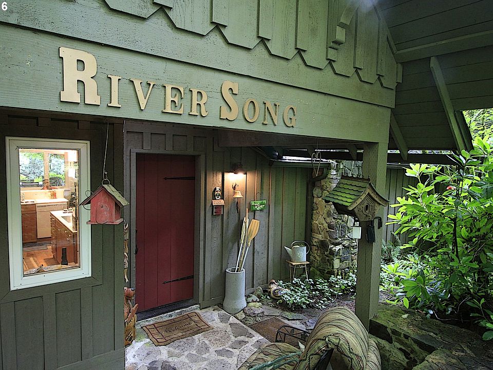 Approx.160 ft river frontage,green space/beach, unique custom cabin w/Caribbean feel!Total remodel 1998 & new electrical, plumbing. Vaulted log beam ceilings,skylights,character wood floors, open concept, 3 bdrms,2 baths, 1 level living, Covered deck for watching river life, beautiful stone fireplace. 2 1/2 mile to river store.