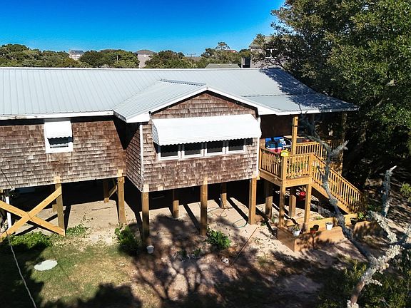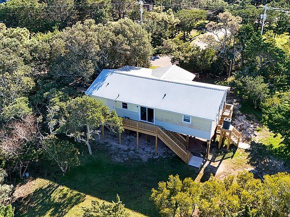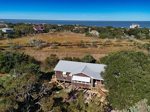 A recently elevated 3 bedroom/2 bath home with a new piling foundation! Located on an oversized lot (house lot approximately 19,700 sq. ft) with a view of the saltmarsh from your back deck. There is an additional adjacent large marsh lot that extends across the back lot lines of the homes on Cutting Sage to Sound Shores that conveys with the sale! The beautiful old live oaks and nice grassed yard add to the Ocracoke charm of this property. Central heat/ac, vinyl plank flooring throughout, ceiling fans, galley kitchen with a sliding glass door to the back deck, a front covered porch and a 4 season room with table and chairs for extra dining space. Outdoor amenities include a curved driveway, 2 sheds, metal roof and outdoor shower. Currently being rented as a year-round rental but with a few updates can easily transition to a successful vacation rental.