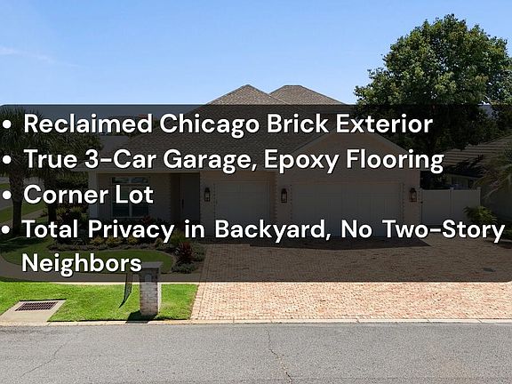 *Please Click & View The Full Virtual Tour that includes Cost To Own, Rental Projections, and Notable Features List*11 Tristram Way is the quintessential family home - located in Avalon Beach Estates, this custom-built 2016 residence boasts a three-car garage, reclaimed Chicago brick accents, gas appliances, and one of the most peaceful backyards that I've experienced at this price point. The community is one of the best deals on the Emerald Coast, for a $1,600 annual HOA fee it boasts 500' of private beach and has one of the highest beach-to-people ratios of any community. It also provides a community pool, pickleball, and tennis, and it's a short golf cart or e-bike ride from the Destin Commons & Sandestin Factory Outlet Mall.