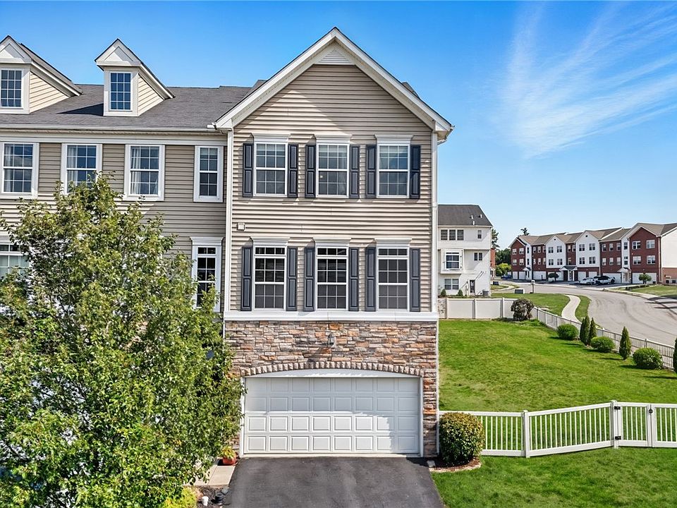Stunning 3-bedroom end-unit townhouse in sought-after Kennedy Township with convenient parkway access to the city! The open main level features hardwood floors and a seamless flow between the kitchen, dining, and living rooms. The kitchen boasts stainless steel appliances, an island, a beautiful tile backsplash, and sliding glass doors leading to a large composite deck—perfect for entertaining. An electric fireplace adds warmth to the living space. Upstairs offers two well sized bedrooms with brand-new carpet, a laundry area, and a luxurious primary suite with tray ceilings, a walk-in closet, an en suite bath, and a tile shower. The finished lower level provides a flexible space ideal for an office or guest suite, plus a two-car integral garage. Enjoy the large fenced-in yard with beautiful landscaping and an additional lower deck!