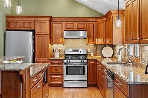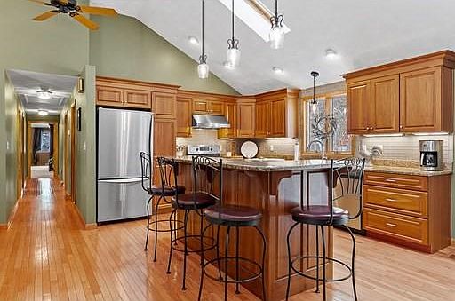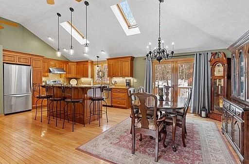 Pride of ownership shows throughout this spectacular oversized custom Raised Ranch located minutes to Route 93. You will fall in love as you walk in and see the vaulted ceilings and open concept first floor with gleaming hardwood floors. Gorgeous cabinet packed kitchen with granite countertops, tile back splash, two tier center island, recessed and pendant lights and 2 skylights and is open to the dining and living rooms. The master bedroom suite is your own oasis with vaulted ceiling, huge walk in closet and enjoy the spa-like ensuite and catch the breeze when you open the double doors to your private balcony. Dont forget the beautifully finished lower level perfect for entertaining your guests. The lower level family room features a wet bar and wood stove surrounded by natural stone and an additional bonus room to fit your needs and another bath. Central Air, 2 car garage, newer roof and driveway. This home has been lovingly maintained and a pleasure to show!