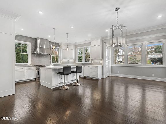 This stunning 5-bedroom, 4.5-bath home is ideally situated in the heart of Cos Cob, just moments from top-rated schools, dining, and shopping. Showcasing exceptional craftsmanship throughout, the home features a dramatic two-story foyer, custom paneling, and a spacious, light-filled layout designed for modern living.