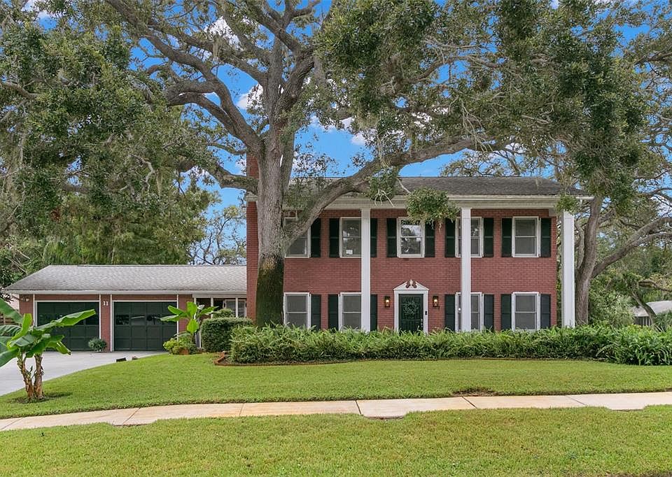 Welcome to this one-of-a-kind two-story Colonial home in desirable Safety Harbor! Situated on a prominent corner lot, this 3-bedroom, 3-bath beauty is full of character and thoughtful details. As they say, LOCATION, LOCATION, LOCATION! This home sits high in flood zone X, less than half a mile from Philippe Park. Walk, run, or bike to the park for beautiful sunrises and tree-canopied trails, or launch your kayak or boat from the public ramp. Step inside to discover a spacious living room/formal dining room combo, as well as a family room with a cozy fireplace, ideal for gatherings or quiet evenings at home. The updated kitchen features a breakfast nook, coffee bar, and quartzite countertops. There is a full bathroom on this level that serves as a pool bath, as well as an indoor laundry room and a "bonus" room that provides extra storage or would make a perfect spot for a Peloton bike! Luxury vinyl plank flooring fills the home upstairs and down. Head upstairs to find the three bedrooms, each with large closets. The master suite is a true retreat, featuring its own private fireplace for ultimate relaxation and a laundry chute to the first floor. The master bathroom was renovated in 2023 and includes dual sinks as well as dual shower heads in the spacious walk-in shower. The two additional bedrooms feature walk-in closets with windows, offering the potential for office or exercise space. The upstairs bathroom was also renovated in 2020. Outside, your private oasis awaits: a large in-ground pool that stretches up to 8 feet deep—perfect for summer fun or serene floating under the stars. The oversized two-car garage provides ample space for vehicles, storage, or a workshop setup. A large shed provides additional storage, and a well for irrigation helps keep the water bill low. This home offers timeless curb appeal with its Colonial facade, mature oak trees, and an unbeatable location on a quiet corner lot. Don't miss this rare opportunity to own a home that truly stands out from the rest!