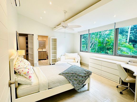 Nestled in the heart of the world-renowned resort community of Dorado Beach, this breathtaking 2-story villa is immersed in a private lush tropical paradise. The expansive and beautifully crafted space boasts stunning ocean views and charming golf course scenery. Imagine stepping outside to lush landscapes, pristine beaches, and world-class golf courses all at your doorstep. The recently renovated villa showcases the finest luxuries Puerto Rico has to offer. First Floor: Entry/Foyer: The exquisite villa entrance greets you with a stunning Embula wood door, a native treasure of Puerto Rico. This unique feature sets a warm and inviting tone, making you feel right at home. Family Room: The expansive family room offers a perfect blend of comfort and captivating views. Its open-concept design creates an airy, inviting space ideal for family gatherings or cozy nights in. Lounge on the plush sectional while enjoying uninterrupted ocean views through the large sliding doors. These doors seamlessly collapse to merge indoor and outdoor living, opening to a patio on one side and direct access to the golf course on the other. Kitchen: This sophisticated, open-plan kitchen is impeccably designed to cater to culinary enthusiasts. It boasts a state-of-the-art Thermador 3-piece built-in ensemble, comprising a freezer, wine refrigerator, and full-sized refrigerator, alongside Sub-Zero dual refrigerated drawers to keep beverages perfectly chilled. Culinary artistry comes alive with the precision of the WOLF 4-burner electric and 2-burner induction cooktop. Cleanup is effortless, thanks to an oversized sink equipped with a touch-activated faucet and dual Bosch dishwashers. Surrounding the space are sleek, modern cabinets and generously sized drawers, offering abundant storage for all your gourmet essentials, from appliances to elegant tableware. The centerpiece of this extraordinary kitchen is an expansive island, thoughtfully designed with integrated electrical outlets and seating for six, blending functionality with refined style. Dining Room and Sitting Area: Located on the main level, the dining room exudes sophistication with a grand, custom-crafted square dining table that comfortably seats ten in luxurious upholstered chairs. This space is perfect for hosting elegant dinners or intimate gatherings, enhanced by ambient lighting that creates a warm and inviting atmosphere. Adjacent to the dining room, a refined sitting area beckons for post-dinner relaxation, featuring plush seating, a state-of-the-art TV with ROKU, and immersive surround sound for a cinematic experience. Four expansive, floor-to-ceiling sliding glass doors effortlessly collapse, blending the indoors with the outdoors and providing direct access to the golf course, where breathtaking views and fresh breezes enhance every moment. Bathrooms and Storage: The lower level is thoughtfully designed with two full, well-appointed bathrooms and an oversized storage area, offering ample space for convenience and functionality. Second Floor: Upstairs Master Suite: The master suite is a sanctuary of luxury, featuring floor-to-ceiling windows with sweeping ocean views. The spacious room boasts a king-sized bed, a cozy sitting area, and a desk perfectly positioned to overlook the golf course and ocean a truly inspiring workspace. Start your day in the expansive walk-in closet, thoughtfully designed with his-and-hers sides, an elegant central island with drawers, and a cushioned bench. The en suite bathroom epitomizes indulgence, offering a free-standing tub, a multi-head shower, and a large window framing serene tropical forest views, creating a tranquil retreat. Bedroom #2: The second bedroom features a comfortable full-size Murphy bed and plenty of storage. It is the perfect location for a home office, with its floor-to-ceiling windows overlooking the golf course and the ocean. There is also a sitting area and space to use as needed. The en suite bathroom features a large walk-in shower. Bedroom #3: This elegantly appointed third bedroom features a plush full-size bed, a cozy sitting area, a desk, and a dresser. The en suite bathroom boasts a spacious walk-in shower, offering both privacy and convenience. The room's expansive windows provide stunning views, creating a serene atmosphere, with the option to enjoy natural light or dim the space with integrated blackout shades for ultimate relaxation. Bedroom #4: Located on the upper level, this versatile fourth room includes an en suite bathroom with a generous shower and all essential amenities. Currently set up as a gym or yoga studio, this flexible space can easily serve as an office, nursery, or guest bedroom, catering to your needs with ease. Spacious Laundry Closet: Conveniently located off the large landing leading to the bedrooms, the well-appointed laundry closet is equipped with a full-sized washer and dryer, offering practicality and ease. Outdoor Space: The villa boasts an exquisite outdoor area designed for relaxation and enjoyment. The private front patio serves as a tranquil retreat, with a casual seating area that seamlessly merges with the Family Room when the sliding glass doors are fully opened. This secluded space is ideal for intimate dining or simply savoring the serene surroundings. For added convenience, an outdoor shower awaits, perfect for rinsing off after a swim or simply embracing the outdoors. The front patio offers the perfect blend of privacy and natural beauty, making it an idyllic retreat. This villa is the paragon of luxury living, offering an unmatched combination of elegance, comfort, and breathtaking natural beauty. From its meticulously designed interiors to its seamless connection with the lush surroundings of Dorado Beach, every detail has been crafted to provide an extraordinary living experience. Embrace a lifestyle of sophistication and indulgence, where every moment feels like a retreat into paradise. Make this exceptional home your own and experience the 