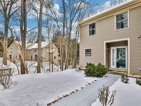 Welcome home to this spacious, sunny, end unit 2 bedroom, 1.5 bath townhome! Nestled in a tucked away wooded natural setting. Enjoy the open concept and multiple sliders to the large private deck overlooking the Baboosic Brook or sit by the wood burning fireplace. The large primary bedroom with master bath, offers a retreat on its private outdoor deck to enjoy nature. 2nd fl. laundry or in basement options. The walkout basement awaits your finishing touches. Newer furnace and tankless hot water tank and updated electrical. The property offers gorgeous perennial gardens and near by walking path along the brook for leisurely strolls in a natural setting and walk to Watson Park, Kid's Cove and municipal centers. Carport, pet friendly. Easy access to highway. Come on by! Seller to credit buyer 12 months of special assessment fees at closing $2400
