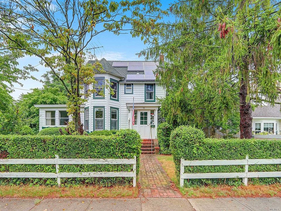 Plenty of charm throughout this classic Babylon Village Colonial! Enjoy Living Room w/ Gas Fireplace, Banquet Formal Dining Room w/ Built-Ins, French doors leading to Sunroom! Original Hardwood Floors, Walk Up Granny Attic is perfect as a playroom or for additional storage, 2 full baths, Most energy star windows replaced by Andersen 3 years ago, Steam heat, Solar panels for electric. 2 car detached garage, southern exposure, too! Full Basement for storage. All Babylon Village amenities! Minutes to shops, restaurants and railroad!
