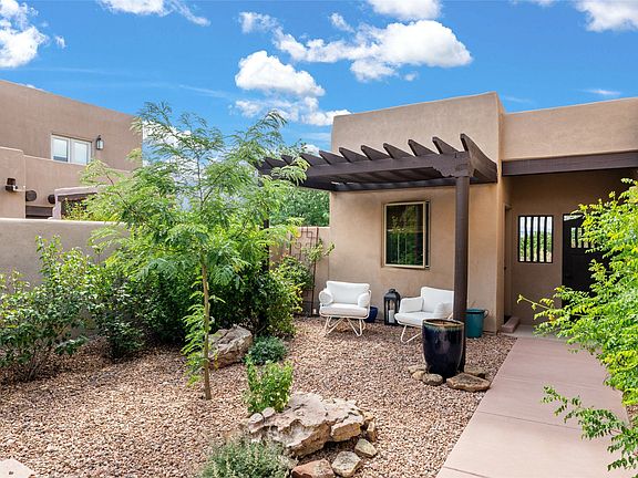 With a flawless new sewer line inspection report available, this home is move-in ready! Showcasing a functional design in one of the most desirable locations in Santa Fe, this stunning home is a rare opportunity to own a home UNDER 1 million dollars in Las Campanas. The home maintains a warm, welcoming feel, filled with natural light and surrounded by native landscaping, and walled backyard for privacy and pet safety. Just minutes from downtown Santa Fe, a quick trip to the airport and easy highway access, this property offers the best of Southwestern living - spacious, secluded, and perfectly situated. This home has been beautifully updated with new kitchen cabinets, a luxurious primary walk-in closet, a full wall of husky cabinets and 2 additional benches in the garage, a new tankless water heater, a reverse osmosis water treatment system and many more upgrades. A private enclosed patio is showcased in this elegant design that seamlessly combines easy living with the rugged Santa Fe views and sunsets that our state has to offer. Beautiful, established landscaping with drip irrigation, flagstone patio and walk ways makes for an enjoyable and low maintenance outdoor space. The open kitchen and living area, framed by a peaceful garden (perfect for pets), offer an inviting space for gathering with friends and family. Complete with a detached studio, this property offers unmatched versatility in a beautiful gated community with 24 hours security/EMS, and designated path walks few steps from your front door. Owners have the option to gain access to The Club at Las Campanas, which provides exclusive access to two Jack Nicklaus Signature Golf Courses, pools, a state-of-the-art fitness facility, and fine dining. Broker can provide a list of all the incredible upgrades and updates that come with this move-in ready home!