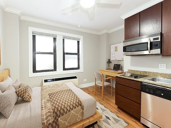 For Gold Coast after dark, this is one of the best locales to be. The electricity is palpable, starting with the legendary club scene of Rush, State and Division Streets. Among the list is Mother's, the classic below-street-level sports bar featured in the blockbuster About Last Night. Now imagine your newly rehabbed Chicago apartment with a bird's eye view of it all. The good things continue with hardwood floors, cherry cabinets, granite countertops, stainless steel appliances including dishwasher and microwave, and slate tile bathrooms. In what was originally a turn-of-the-20th-century hotel, there's also a fitness center and laundry room. With that, you're invited to live in a place where your surroundings outside are as sweet as those inside.