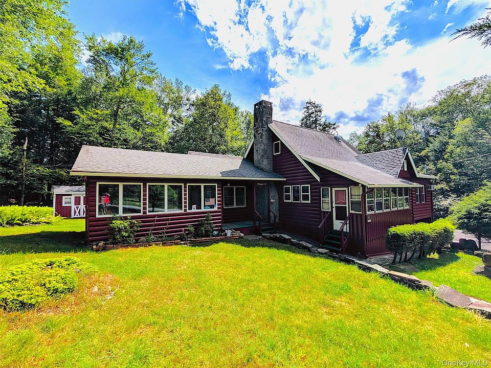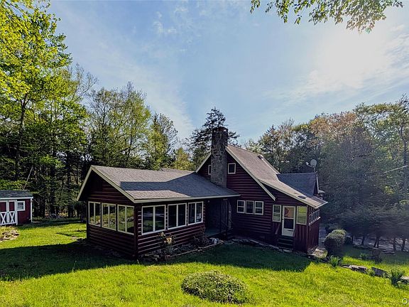 Welcome to Shangri-La, a peaceful 3-bedroom, 3-bath retreat tucked away on a quiet cul-de-sac in the heart of Smallwood—an enchanting Catskills community known for its natural beauty and nostalgic charm.Inside, you’ll find a cozy living room with a classic wood-burning fireplace, warm wood accents, and a bright sun room perfect for year-round relaxation. The kitchen retains its original appeal while offering everyday functionality, and a washer and dryer add modern convenience. The spacious layout includes a comfortable primary suite with a private bath. Step outside to enjoy a sunny deck and stone patio, ideal for relaxing or entertaining. A partially finished walkout basement offers flexible space for guests, hobbies, or a home office. The property also includes a detached garage, carport, and shed, providing ample storage and utility.