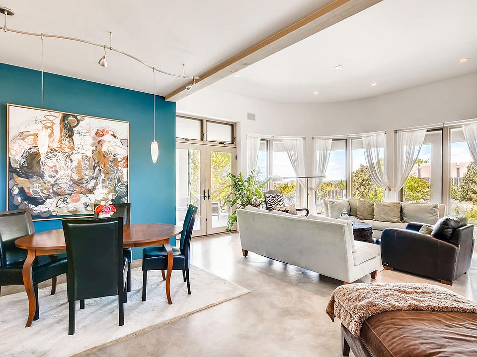 Intimate and elegant, this contemporary 2 bed/2 bath home invites the outside in with stunning sunsets and Jemez Mountain vistas. The home was designed and collaborated with designer, David Naylor, to flow organically and take advantage of the expansive views and play of desert light. Located at the end of a quiet cul-de-sac on 1 acre of land, the property seems far removed from the city's bustle, yet is a mere 5 minute drive from downtown Santa Fe. Room to add a guest house for anyone generous enough to want to share this idyllic spot with others.