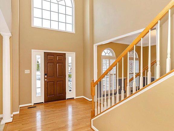 Nestled on the 5th largest lot in Glenbrook, this stunning brick-front Avalon home offers unparalleled privacy as it backs to lush trees. Upon entering, you'll be welcomed by a grand two-story hardwood foyer that leads into a spacious living room on one side and an elegant dining room on the other. The gourmet kitchen is a chef's dream, featuring an abundance of 42" cabinets, a central island, double ovens, a walk-in pantry, a corner double sink, and newer appliances. Adjacent to the kitchen, the expansive breakfast room/sunroom is bathed in natural light and offers access to the backyard. Step outside to discover a beautiful stone patio with a cozy firepit, plus a second patio wired for a hot tub—perfect for outdoor relaxation. The family room has a cozy gas fireplace and opens to the kitchen which is great for entertaining. This home boasts a unique floor plan with two separate home offices on the main level, offering privacy and flexibility for remote work or other uses. The second office can easily be transformed into a playroom or craft space if preferred. Upstairs, the owner’s suite is a true retreat, featuring a spacious sitting area and two generous walk-in closets—which include a hidden storage area for your seasonal items in each. The luxurious bath offers a beautifully tiled shower, a jetted tub, and double vanities as well as a water closet. The three additional bedrooms are all large, each equipped with ceiling fans. One bedroom enjoys its own private bath, while the other two share a well-appointed Jack-and-Jill bath. The lower level is designed for recreation, with a large, open recreation room with a rough-in for a bar and an exercise room complete with a wall of mirrors and wood floors. There’s also walk-up access to the backyard through double doors. Both HVAC units are under five years old, the solar panels make electricity affordable, and the roof has plenty of years left on it ensuring that major updates are already taken care of. Conveniently located within the Middletown School District, and just moments from restaurants, grocery stores, coffee shops, pharmacies, and commuter routes, this exceptional home is move-in ready and waiting for you. Don't miss your chance to make this estate your own!