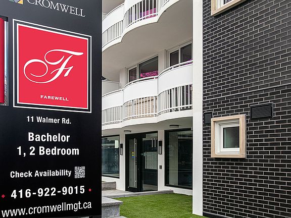 - Special offer! New tenants who sign a 12-month lease at 11 Walmer Road get 1 MONTH FREE (conditions apply). - New tenant who signs a **12-month** lease on an apartment beginning November 1st, 2025, gets **1 MONTH FREE**. The free month is applicable on the eighth month of the term. This offer applies to all apartment sizes. Please mention this offer when applying for an apartment and discuss the details.