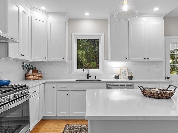 - Features: Flooring - Hardwood, Dining Area, Countertops - Stone/Granite/Solid, Kitchen Island, Exterior Access, Open Floorplan, Recessed Lighting, Remodeled, Stainless Steel Appliances, Lighting - Pendant, Crown Molding