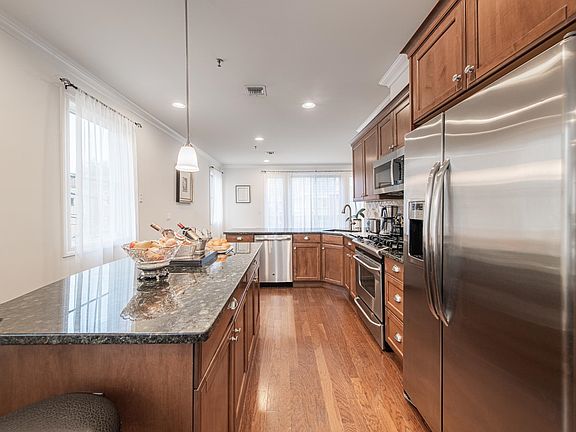 Welcome to your light-filled open concept end unit townhome in a prime location. Upon entry, you are greeted by the spacious living area with floor-to-ceiling windows. This open-concept space is rich in natural light and in-turn, very inviting. The living space is inclusive of the center-island kitchen, complete with granite countertops. Off of the kitchen is an intimate family room and balcony. The quality of construction is readily apparent in the grand ceiling height, detailed crown moldings, and gleaming hardwood flooring throughout the home. Upstairs boasts three large bedrooms including the primary suite complete with travertine tile bath with dual tub and shower. A tandem garage is attached directly to the centrally heated/cooled home. Spectacular location just off Gorge Rd - walking distance to Edgewater's riverfront and its incredible shopping and restaurants. Steps to NJ