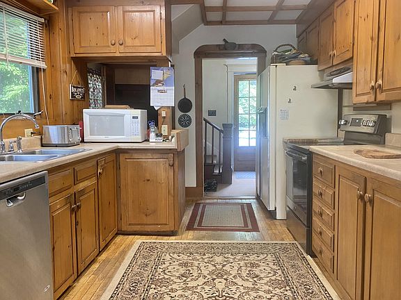 Walkable village living... This 3 bedroom Hip roof Colonial is more than meets the eye and features many of the old home characteristics people love, including all wood floors, solid wide trim, and a beautiful fireplace with built in book cases. Ample sized bedrooms feature walk in closets. The newer deck overlooks a large well landscaped lot you don't see from the road containing a number of different perennials and mature trees. It even has a set up for chickens. Interested? Call today!
