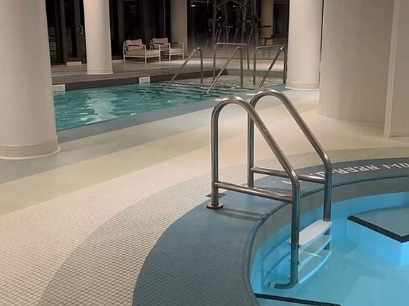 - Exterior features: Balcony, Common Elements included in rent, Concierge/Security, Ensuite, Exercise Room, Heating system: Forced Air, Heating: Gas, Indoor Pool, Lot Features: Public Transit, School, Park, Other Shaped Lot, Open Balcony, Other Shaped Lot, Park, Pets - No, Public Transit, School, TSCC