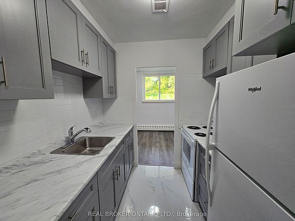2 comfortable bedrooms facing the woods. A quiet retreat from the city but easy close commute to Acton, Guelph, Orangeville, Georgetown and Brampton. Brand new fridge & stove, new kitchen cupboards, new shiny ceramic floors, brand new clean bathtub, vanity and toilet never used. The entire apartment has been repainted. It's been totally updated and renovated!! Water, heat and 1 parking spot included. Extra parking available. Only pay hydro that you use. Absolutely no smoking! Move in ready. Book your private viewing today!