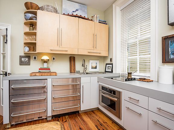 This perfect pied-a-terre in the heart of downtown is ready for a new owner! This charming space is ideal for a buyer who desires to be in a historic building that's flooded with light and is walkable to everything. Adorable second floor one bedroom / one bath has everything you need including a full kitchen, gas fireplace, single unit washer/dryer, full bath with tiled shower, and a cute balcony. High ceilings in the main room really make the space live large. Building is self-managed and regime includes building insurance, flood insurance, gas lanterns. Easy street parking on Logan Street with resident decal. Bedroom cannot accommodate a king bed.