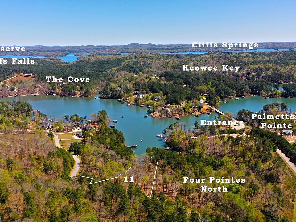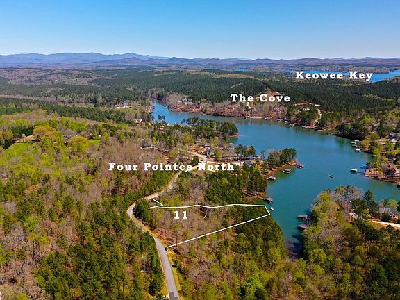 A gentle sloping point lot with 270 feet of waterfront and a covered dock in place with boat lift on deep water. This lot has been underbrushed for easy access and pins are clearly marked with tape. Lots 12,15 and 16 are not dockable giving more dock privacy in the cove for lot 11. Septic permit already approved in supplements. There is a stream that runs along the left lot line that feeds into the lake.