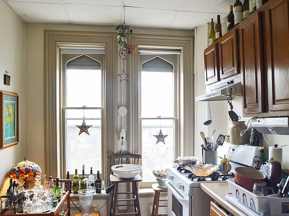 Beautiful and large south facing one-bedroom apartment. Original vintage decor and Victorian bathroom with two decorative fireplaces. 12-foot ceilings. Tall windows. Partial views of the Hudson River. Private parking lot with on-site laundry.