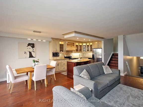 Welcome to Tiffany Place in highly sought-after Etobicoke! This stunning multilevel unit boasts over 1300 SQFT of luxurious living space with breathtaking, unobstructed south views. Once inside, you're greeted by a sun-filled interior, accentuated by an expansive balcony, perfect for soaking in the sun, BBQing or Dining. The 3 bed 2 bath layout, offers ample space for families or those looking to downsize without compromising on comfort. The built-in fireplace in the living area creates a warm and inviting ambiance. Storage won't be an issue with plenty of options, including the built in Cabinetry and an ensuite storage room. The Large in suite Laundry has plenty of storage space. Open Concept Kitchen and Breakfast Bar highlight this thoughtful layout. This unit includes 1 parking spot, has been recently painted and meticulously maintained. Located in a Great Neighbourhood, this condo combines comfort, convenience, and style. Enjoy a wide array of amenities including indoor pool, gym, tennis courts and sauna. Ideal for first-time buyers, small families, or those looking to Smart Size. Maintenance fee includes ALL UTILITIES!! Don't miss out on this opportunity to call this exquisite condo your new home!