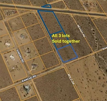 EXCELLENT OPPORTUNITY TO PURCHASE 3 LOTS IN ONE SALE!! Own your own block! These properties comprise of just over 8 acres. Property corners are staked so you can visualize the lot sizes. Located in the Snowline School District and not far off Wilson Ranch Road. Don't miss this opportunity to purchase a large lot already subdivided!! Parcel- 307022121-1.979 acres, 307022122-2.289 Acres and 307022123-3.902 Acres.