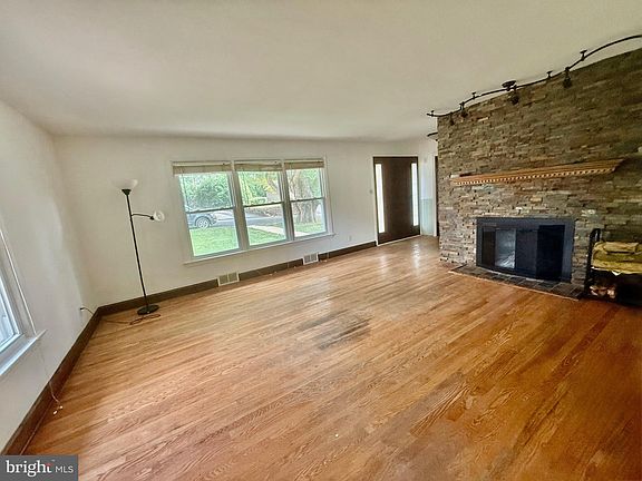 This spacious split-level home in desirable Delaire sits on a large corner and features a gorgeous inground pool! Enter through the fabulous front door into the main floor which features a foyer and living room with hardwood floors and fireplace, and a large kitchen with dining area and door to the side yard. The upper level has 2 bedrooms with hardwood floors and 1 full bathroom with tiled shower/ jetted tub combo and updated vanity. The lower level has 2 additional bedrooms with hardwood floors, ceramic tiled hallway & half bathroom and access to the backyard. The partially finished basement has ceramic tile floors throughout and includes additional living space. laundry, storage and a bonus partial bath (shower and sink). This home has plenty of closet space and several built-in storage units. Hot Water Heater replaced in 2022, HVAC replaced in 2018, Roof replaced in 2008.
