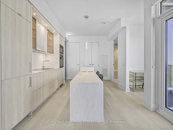 Thoughtfully designed interior spaceSpacious northeast-facing balconySleek kitchenWhite marble countertopsFunctional kitchen islandFloor-to-ceiling windowsSplit bedroom plan