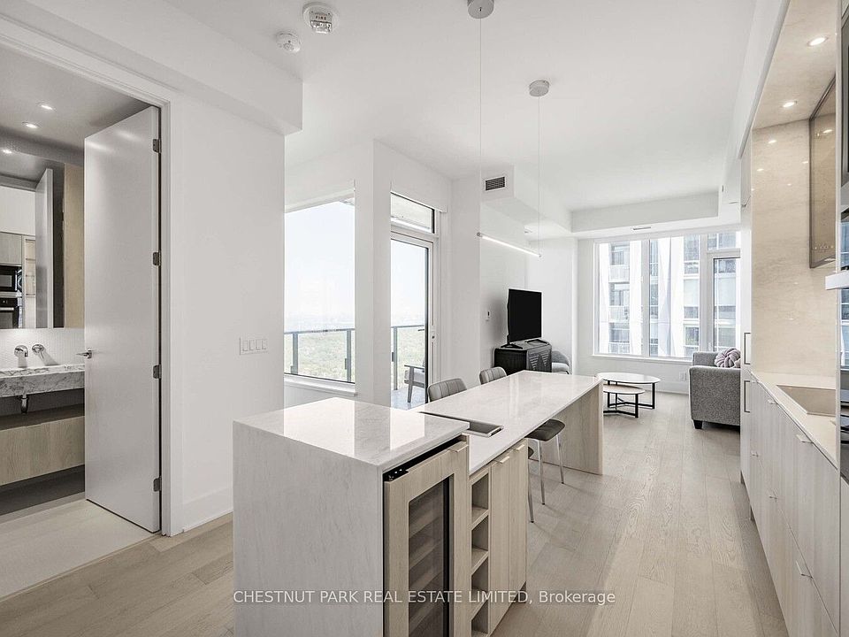 Experience Elevated Living in Yorkville's Newest Luxury Residence! Welcome to this stunning, fully furnished condo featuring 2 bedrooms plus a media area and 2 full baths in an exclusive, newly constructed building overlooking Toronto's lush Rosedale Ravine. With 823 sq. ft. of thoughtfully designed interior space and a spacious northeast-facing balcony, this light & airy, fully furnished corner suite is move-in ready and ideal for professionals, downsizers, or downtown enthusiasts! The sleek kitchen features white marble countertops, a functional kitchen island that one can sit at, and modern light and neutral cabinetry. Integrated hi-end appliances including microwave & wine fridge. Opens seamlessly into a bright living area with floor-to-ceiling windows providing sweeping & awesome north east views. Designer cabinetry & white marble countertops throughout the suite. Desirable split bedroom plan features a primary bedroom boasting a 2 closets and stylish spa-like 4-piece ensuite bath, while the second bedroom offers flexibility for guests or a dedicated home office. 3-piece secondary bath/powder room. Enjoy the additional media/work space area just off the kitchen, definitely a bonus. Locker included. Automatic blackout window blinds in bedrooms & principal rooms. Located in the heart of Yorkville, steps from designer boutiques, gourmet restaurants, cafes, University of Toronto. TTC and all Subway lines are mere steps away. Walk score 100. Enjoy a world-class building, fabulous amenities including: state-of-the-art fitness center, Hamman spa & steam room, indoor/outdoor infinity pool, piano lounge, wine lounge, zen garden, fully equipped business centre, private theatre, BBQ lounge, 24/7 concierge. Whether you're entertaining or working from home, this unit offers style, comfort, convenience, and refined living in one of Toronto's most coveted neighbourhoods.