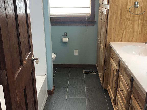 Great updates! Come check out this charming 2 bedroom home! Many nice updates that include kitchen cabinets, countertops and flooring. Main level features a full bath with dual sinks, and an open kitchen & dining area with patio door access to wood deck in backyard and eat-in counter, as well as a newer entry addition with south exposure. Upper level has 2 bedrooms with built-ins. Partial finished basement includes laundry area and storage. Exterior has spacious yard with alley access. Some vinyl siding, newer shingles, and windows. Heat is propane forced air and does have central air. Great Location!