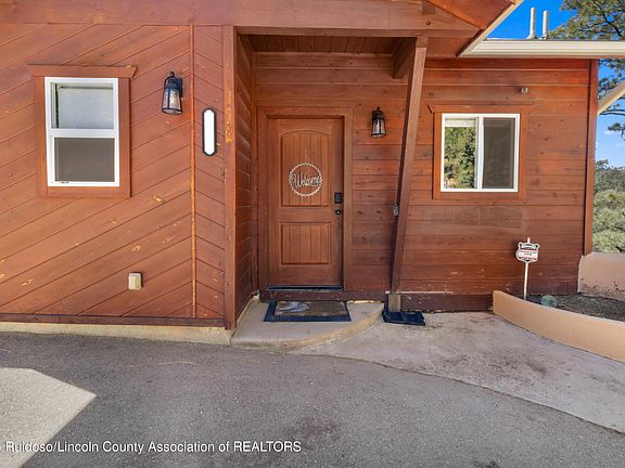 This 2-bedroom, 2.5-bath cabin offers beautiful mountain views from 3 private decks. The main floor provides an open living area with HUGE Sierra Blanca views from the large picture windows or the private deck, a cozy fireplace, a half bath for guests, an eat-in kitchen, and a large master bedroom with a private en-suite bathroom.Downstairs features a spacious den/game room which includes extra sleeping space, as well as a second bedroom, and a full guest bathroom. The second bedroom opens up to a private deck with a large hot tub--perfect for relaxing and entertainingThis modern cabin has central heat and air to keep you comfortable year-round, two large lots for your privacy, and a solid rental history, available on request!