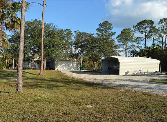 Country Living at Its Finest ; This beautiful estate is what you have been looking for; plenty of land, a cleared backyard, a place to put horses with room for them to roam, a completely fenced property, covered parking for your boat or four-wheeler, a beautiful home, and the freedom and privacy that allows you to escape condo commandos and neighbors telling you your music/partying is too loud! This property has it all. Set off the road for peace and quiet you have a nice graveled driveway with a solar powered automatic gate entrance to greet your arrival. A two-space carport is perfect for guest's parking, ATVs, or a boat. New pavers were just installed around the house and have expanded the entertainment area off the rear lanai. This split-bedroom floor plan home is beautifully tiled throughout and is warm and welcoming. The yard is perfect for a horse lover, as it currently is the home of a beautiful mare named Boo. Golden Gate Boulevard just completed a major four lane expansion that ends right at this street. There are two other lots that back to this property available for sale that can expand your horse and/or ATV trails. One of the best available properties on 2.5+ acres.