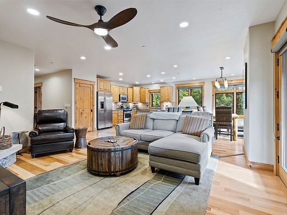 This is the luxury condominium buyers have been waiting for in Frisco! One half block to Main Street and all that Frisco offers. Compare this property to anything available and it will shine. Spacious with three large ensuite bedrooms plus a bonus den space. Wonderful great room with hickory floors, and lots of windows allowing natural light and featuring a beautiful moss rock fireplace. Beautiful kitchen area featuring granite slab counter tops, stainless appliances, Alderwood cabinetry and large eating bar. Single level living with convenient elevator access from heated parking garage, two spaces plus storage for toys and bike parking. Large outdoor deck space featuring both covered and uncovered exposure allowing year-round enjoyment. Directly faces Frisco Historical Park, enjoy the summer concert series from the deck.