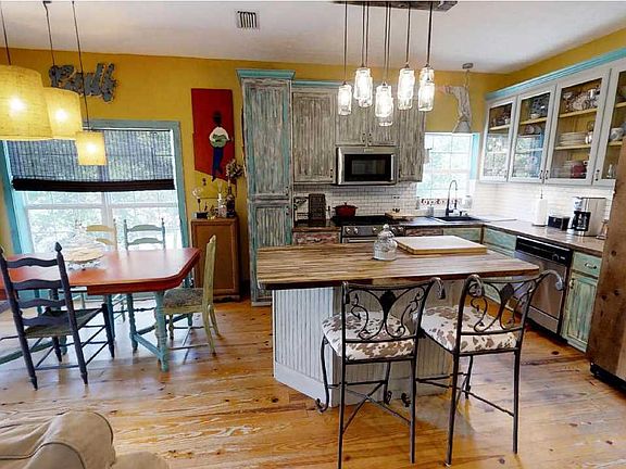 VIRTUAL TOUR!! Nestled just a short walk from the beach, this eclectic coastal home is waiting for you! The open living area is perfect for entertaining or just relaxing after a day at the beach. The kitchen boasts a butcher block island, copper countertops, and a KitchenAid gas range and microwave hood. Large covered front porch to have your morning coffee. Plenty of room to add a pool! Mud room, workshop, and detached storage shed offer plenty of storage.