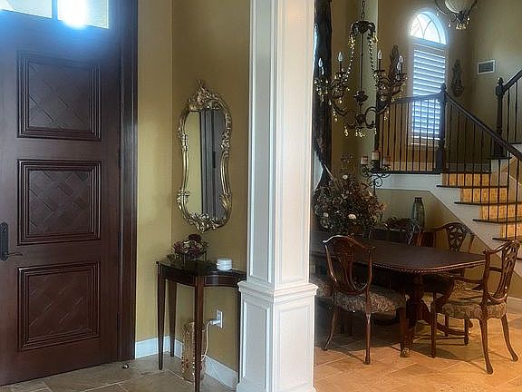 Luxurious Waterfront Living in NW Bradenton. Perfect central location to the beautiful Gulf Beaches and the growing downtown Bradenton. Custom renovations in this stunning 2-story stucco home with oversized three car garage, on the quiet McLewis Bayou with direct access to Manatee River and the Gulf of Mexico. Well-appointed interior features include gorgeous custom entry with wood ceiling, beautiful tumbled travertine marble flooring throughout first floor with the exception of the wood floor in family room and extended game room, which opens to a full pool bathroom. The marble and wood continue with the beautiful staircase. Plantation shutters, crown molding, & custom built-ins throughout. Entertain in the beautiful formal living area that opens onto the pavered pool deck. Family room features coffered ceilings, stone fireplace & wet bar which opens to a breakfast nook and stunning chef’s kitchen. The kitchen is equipped Sub-Zero refrigerator, Wolf 30 inch double ovens, Wolf 6 burner gas range and Miele dishwasher. The custom wood cabinets accent the granite counters, prep sink island, and built in table. The first floor continues to formal dining and formal living space with office/bedroom and guest bedroom which share a custom finished bathroom. Second floor features beautiful Master Suite with custom cabinet and two more oversized bedrooms that share a beautiful custom designed bathroom. Backyard oasis is the perfect hang out spot with pergola, wood ceilings and built in fire pit and lap pool with hot tub, all overlooking the quiet bayou. Dock with boat lift await your power boat to head out to watch the amazing sunsets over the Gulf of Mexico. This beautiful home sits on two lots and has one empty lot, 0.22 acres, for an extra $350,000 that will be offered for purchase to the home buyer. Lot has not been divided from parcel. Total parcel is 0.56 acres.
